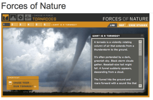 2. Forces of Nature from National Geographic has information and interactives on earthquakes, volcanoes, tornadoes, and hurricanes.