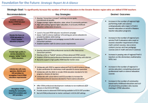 - establish a Greater Boston STEM Educator Consortium to collaboratively pursue goals, practices, and funding for preparing skilled PreK-6 STEM educators