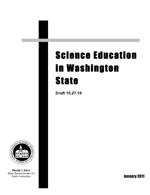 The Office of Superintendent of Public Instruction in Washington State just released a report titled- Science Education in Washington State. The report gives a pretty comprehensive look at the science education system in the state- from time spent teaching science, to instructional materials, policy, and assessment data.