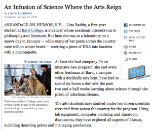 An interesting story about Bard College (a school of the arts) and how a citizen science immersion program is helping art students to become scientifically literate. Click HERE to read the article.
