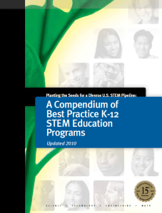 A Compendium of Best Practice K-12 STEM Education Programs (2010) is a report from The Bayer Foundation that details multiple STEM programs and resources. It seems like this document is another useful tool for educators and leaders as we continue to gather information and tools about how to best implement STEM focused programs to impact student learning.