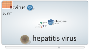 Here is a very useful interactive from Learn.genetics that allows students to manipulate scale and zoom in from the size of a coffee bean down to unicellular organisms, organelles, macromolecules, water molecules, and a carbon atom.