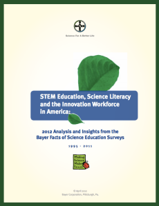 The Bayer Corporation recently released a new report- STEM Education, Science Literacy and the Innovation Workforce in America. This report provides analysis and insights from the Bayer Facts Science Education Surveys conducted from 1995-2011.