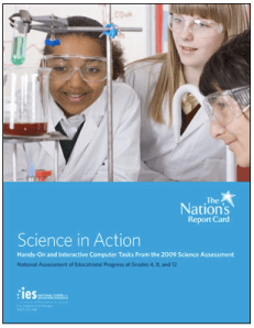 Institute of Education Sciences (IES) recently released- The Nation’s Report Card: Science in Action: Hands-On and Interactive Computer Tasks From the 2009 Science Assessment. This report details findings from performance tasks that were given along with the paper-pencil tasks on the 2009 science NAEP.