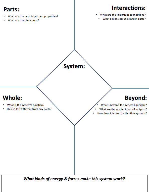 I am a self-professed “systems nerd”.. I love systems thinking, conduct professional development on systems thinking, and am constantly on the lookout for new tools and resources regarding systems. So it is with great pleasure that I introduce to you another tool from the incomparable Tom Hathorn (a fellow systems nerd).. The Basic Systems Questions Framework. This one-pager represents the basic systems questions that relate to all levels K-12: