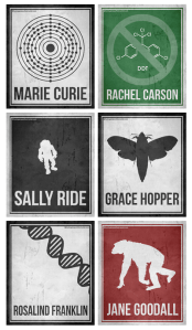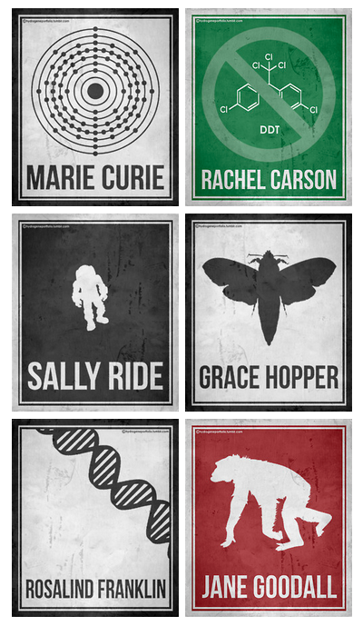 Just wanted to share these excellent posters by Hydrogene that celebrate six amazing women in science: Marie Curie, Jane Goodall, Rosalind Franklin, Grace Hopper, Rachel Carson, and Sally Ride. Check them out- very cool!