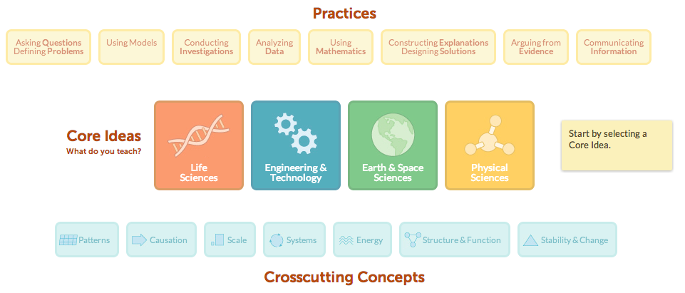 Concord Consortium has a variety of excellent online interactives and simulations for K-12 science education. Concord Consortium also has a dashboard for using the Three Dimensions of the Next Generation Science Standards (Practices of Science and Engineering, Crosscutting Concepts, and Disciplinary Core Ideas) to select interactives. I highly recommend checking out the dashboard and the resources. Click HERE to get started with interacting with the Three Dimensions of the NGSS. Engaging with the dashboard is not only a helpful way of finding resources but also helps to illustrate how the dimensions of the NGSS might work together in instructional tools.