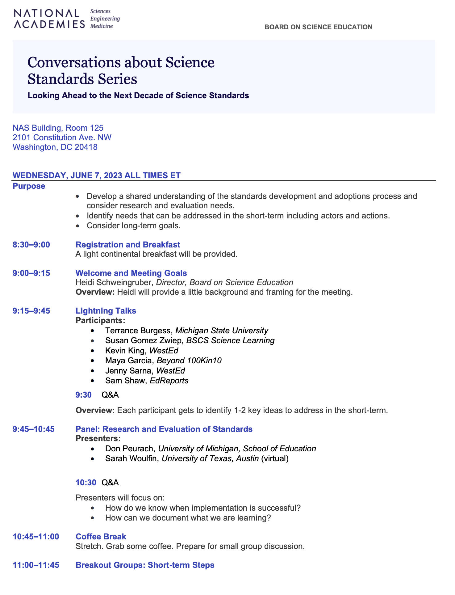 I’m virtually attending the The Board on Science Education at the National Academies meeting titled Looking Ahead to the Next Decade of Science Standards. There have been many powerful moments and thoughtful quotes from speakers. (I’ve posted a few on my Twitter feed HERE if you’re interested.)