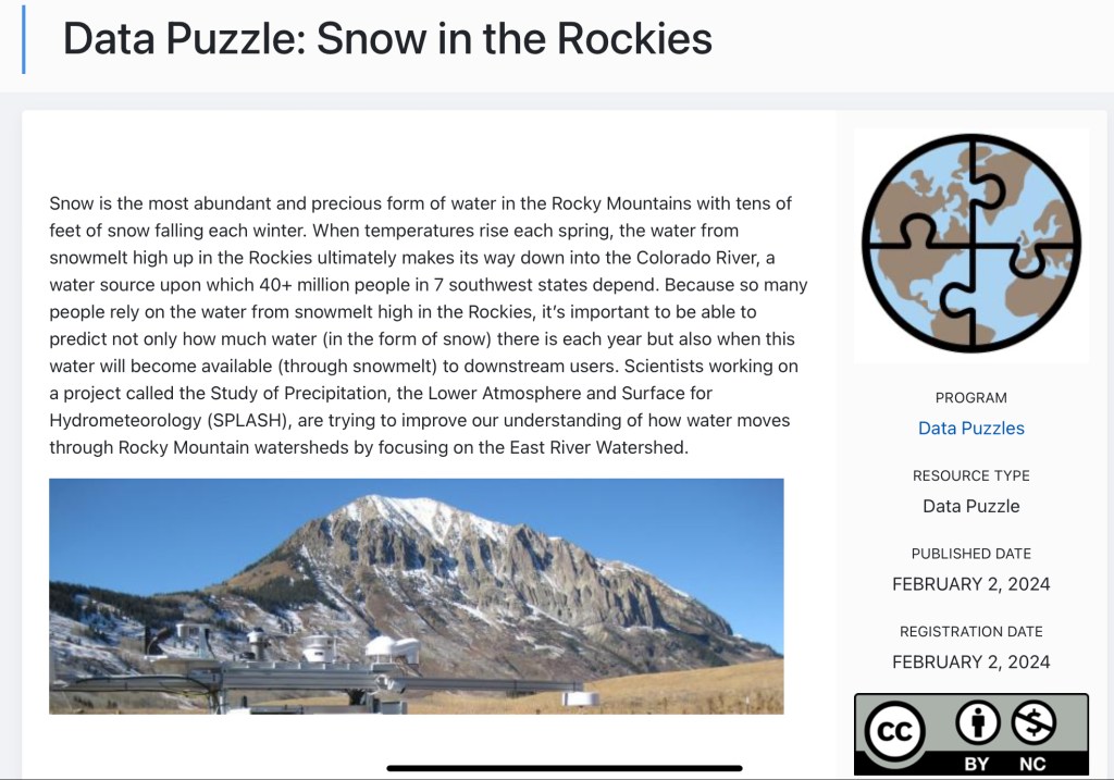 Each of the Data Puzzles tend to be multi-day mini-units that might last a week or so. Check out one of the recent Data Puzzles on Snow in the Rockies that was recently published.