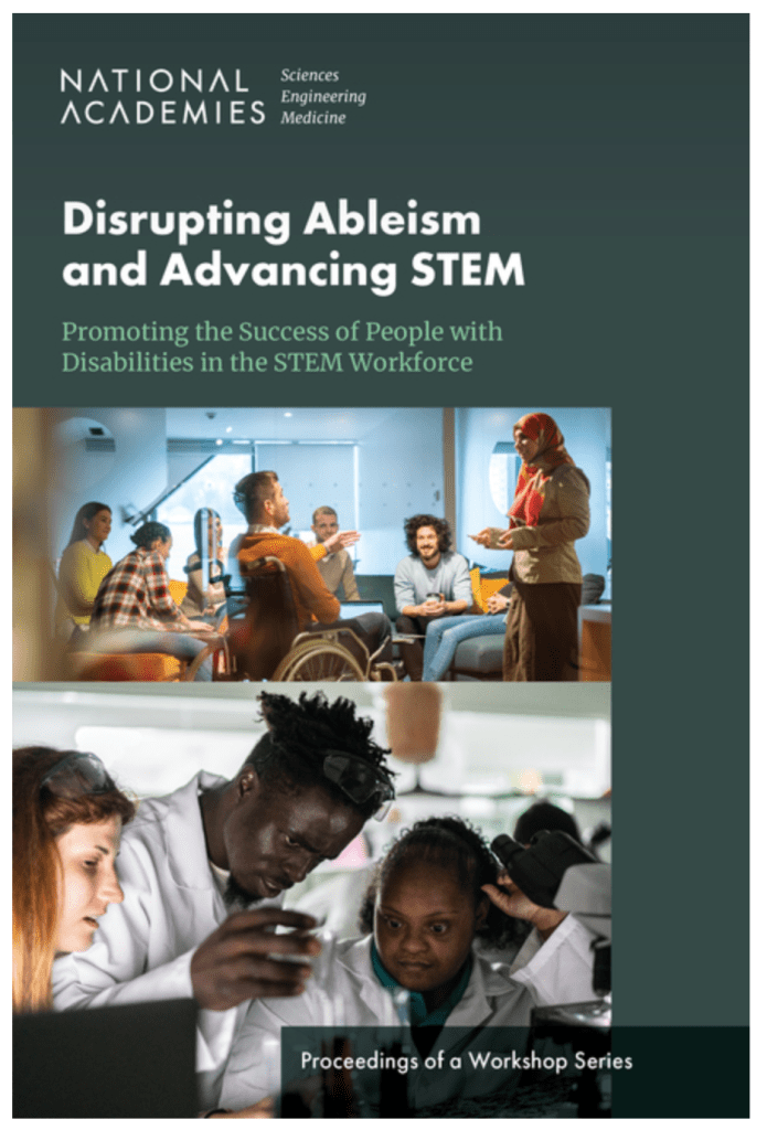 Below is a link to the free National Academies report titled Disrupting Ableism and Advancing STEM: Promoting the Success for People with Disabilities in the STEM Workforce. At the link you will be able to download the FREE document and/or read it online.