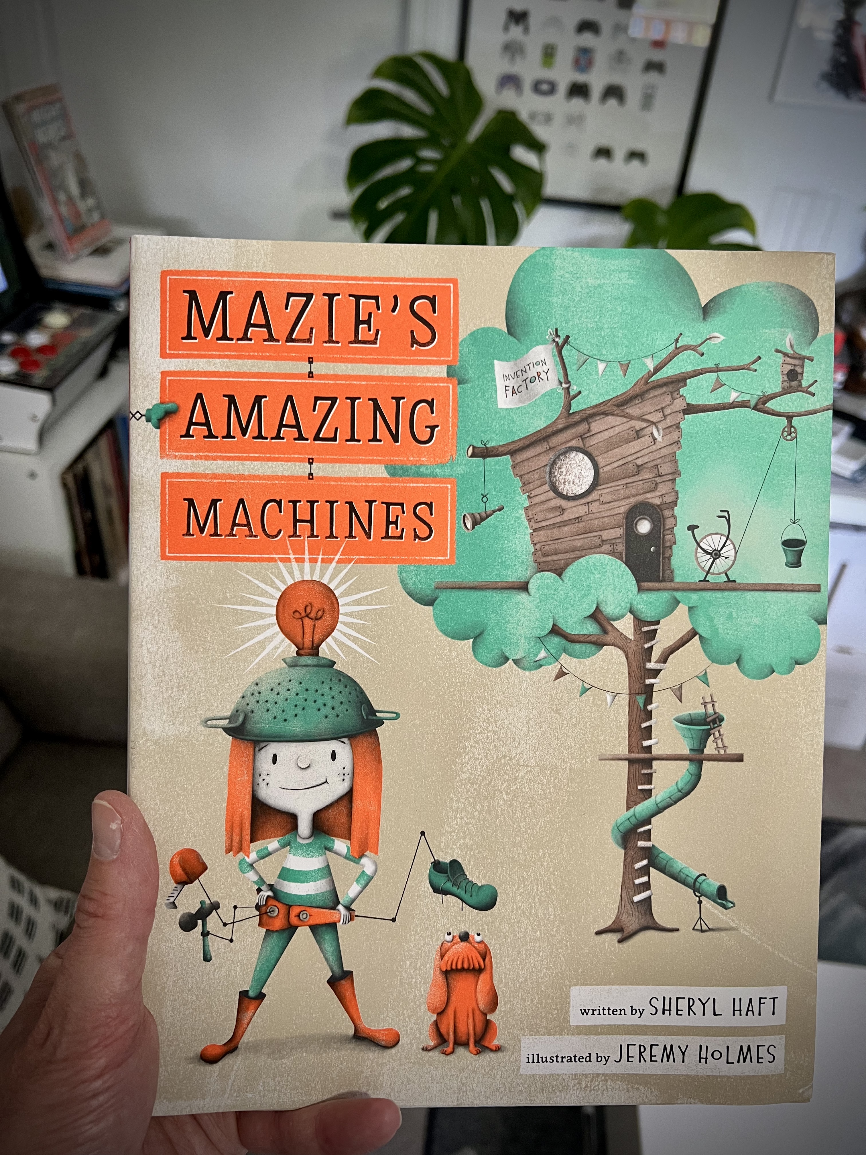 There are a lot of great things about Mazie’s Amazing Machines: it features the color orange (my favorite color), it features a female main character, the illustrations by Jeremy Holmes are spectacular, there are so many rich engineering connections, and my daughter’s long-time childhood friend is named Mazie and looks eerily similar to the character in the book! So all around a pretty incredible gift.