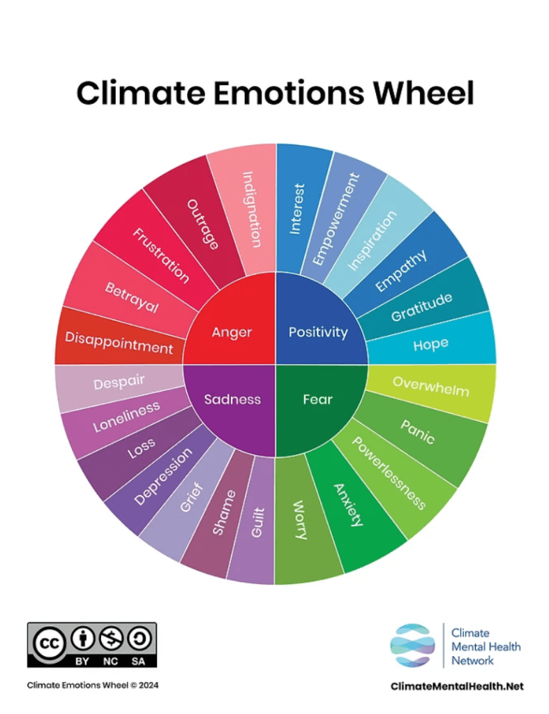 The other day I was hunting for different climate education resources and I found an interesting climate emotions wheel activity. That acri it’s eventually led me to a powerful site called the Climate Mental Health Network.
